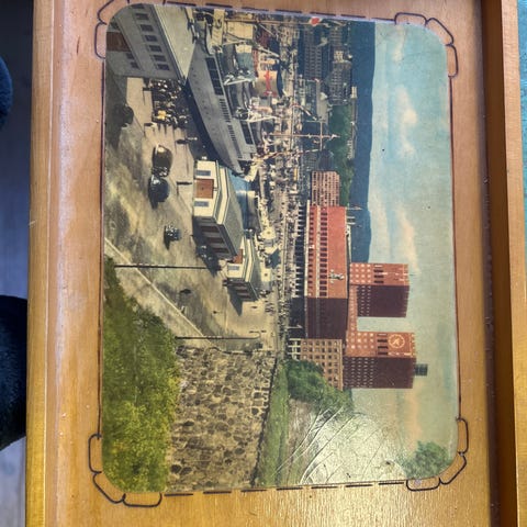 Snekkerbua Trepuslespill laget i tre. Puslespillet består av flere treblokker i forskjellige nyanser av tre, samlet i en ramme. Produktet er håndlaget og har et motiv med hesteansikter på toppen. Egnet som et tradisjonelt puslespill og dekorativt element.