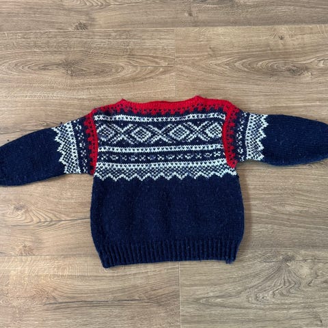 Perfekt til påske! Hjemmestrikket Marius- genser i 100% ull str 2- 4 år