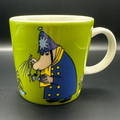 Mummikopp med motivet Politimesteren. Koppen har kronemerke.