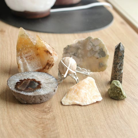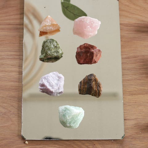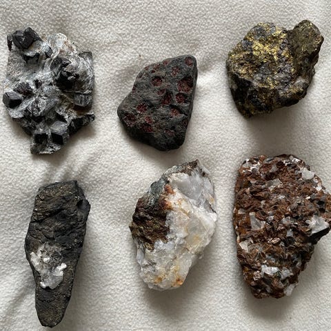 Selger et utstillingssett med seks forskjellige norske mineraler og bergarter, produsert av Saulo as.