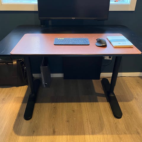 Pent brukt pult fra ikea kjøpt helt ny på verdi av 1495kr 200x60 bare seriøse henvendelser. Et lite bruksmerke i ene hjørnet av pulten.