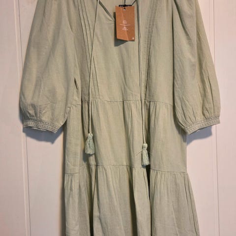 Lang ubrukt kjole i en behagelig grønnfarge med snøring i midjen 💚