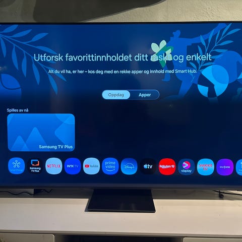 Stor skjerm med veldig fint bilde. Jeg har brukt den med Chromecast, så jeg vet ikke hvordan appene på Smart TV fungerer i dag.