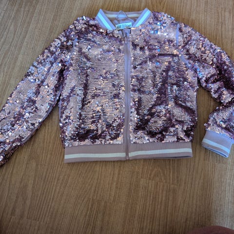 H&M paljettjakke rød, str 134