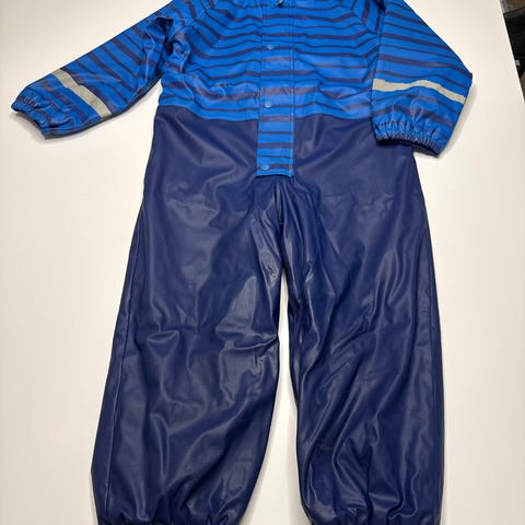 Lilla regntøy kjøpt på Barnas Hus. Har en rift på høyre kne (se bilde 2), og en del flekker grunnet. Har masse bruk igjen.