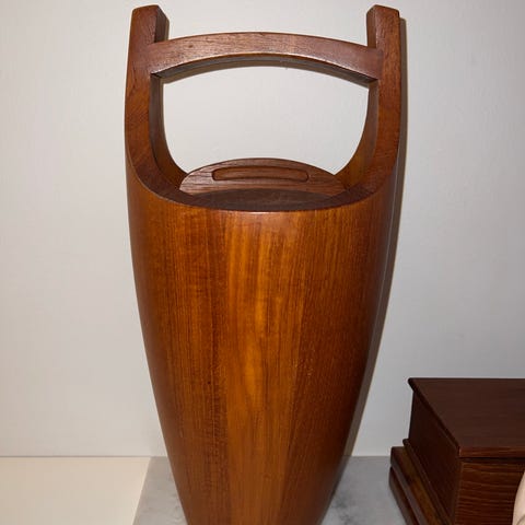 Bestikket er også her ubrukt, "skapet" i teak mangler noen messingdetaljer men er ellers helt strøkent