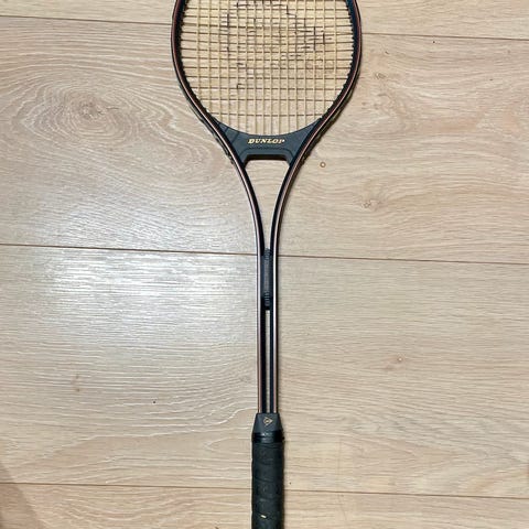 Dunlop Black Storm squash racket med svart og gul farge. Racketen har strenger og et grep med svart overtrekk. Egnet for squash spillerer. Racketen har vært lite brukt og har ingen skade.