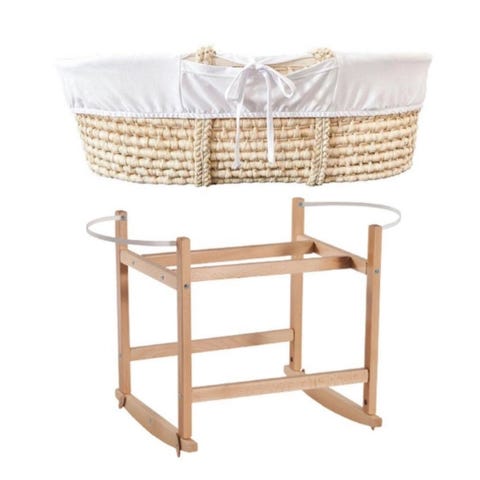 Følger med to typer understell, og ting til å lage en type sengehimmel med, men den har jeg aldri brukt og vet ikke om det mangler noe. Følger med madrass med to laken. Den er godt brukt og vugge-understellet er litt lealaust, men har nok mye bruk og glede igjen 😊