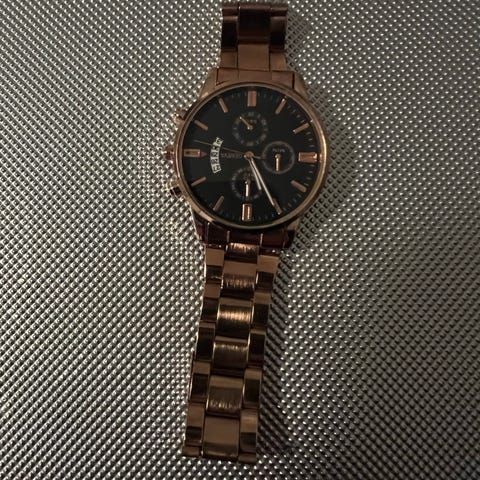 Ønsker å selge denne klokken. Den har romertall som gir den et unikt preg. Den har ingen bruksmerker på seg. Kjøpt på en butikk i Drammen.