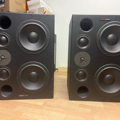 Aktive dynaudio acoustics BM6A studiohøyttalere i sort farge. Denne er første utgave. Består av to høyttalere med frontmonterte diskantelementer og 6" basselementer. Kabinett i svart utførelse med bakmonterte kjøleribber. Egnet for bruk i hjemmestudio eller stereoanlegg.