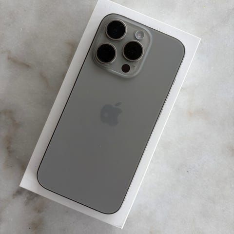 Pent brukt Apple iPhone 15 Pro mobiltelefon med 128 GB lagringskapasitet.