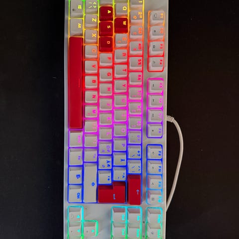 Tastatur som eg har brukt i kort tid. Har orginal boks. Og Manual. Alt funker som de skal av lys, knapper. På tastaturet så er det bluekeys. Som har ein fin mekanisk klikke lyd.