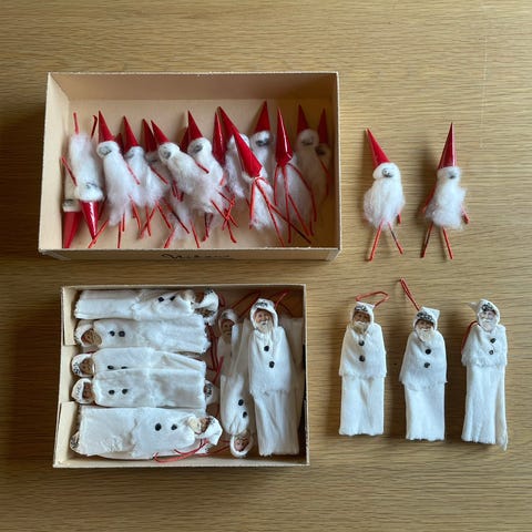 Diverse gammel julepynt fra 40/50 tallet.