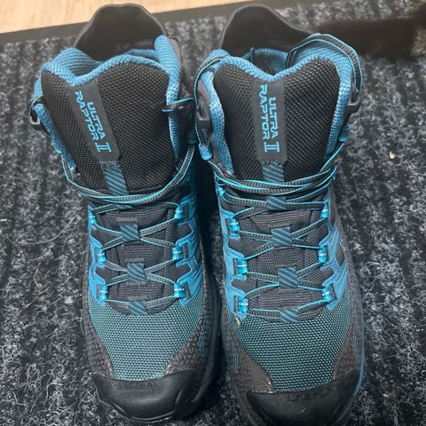Selger et par høye tursko for dame. Lite brukt! Mangler det øverste festet for skosnøring på venstre sko på høyre side.