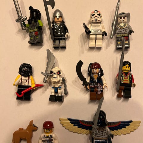 Alt kan selges samlet eller stykkevis . Alt er brukt, men i pen stand. Det ble ikke lekt med figurene. De la lenge nedpakket på loftet.Noe smådeler kan mangle – hvis du vet nøyaktig hva kan jeg lete i kassene mine.
