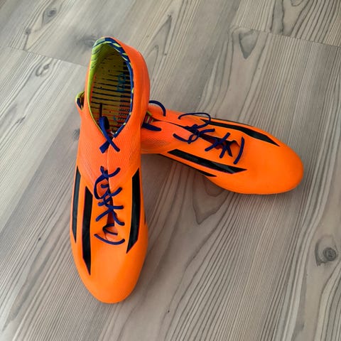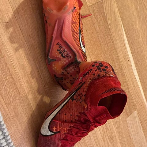 Selger en parr puma sko som jeg brukte i 1 sesong. Skoene er godt brukt men forsatt i veldig god stand og kan brukes masse igjen. Lissan på venstre skoen va blitt kutta så jeg måtte knyte de igjen. De er kjøpt for ca 2500kr og jeg selger de for en veldig billig og rimelig pris. Størrelse 45.5