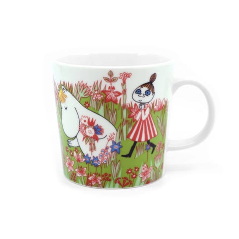 Denne større 0,4-liters versjonen av denne koppen heter Moominvalley – Afternoon (Yellow), ofte omtalt som “Ettermiddags-Mummidalen”- det er en større versjon av 90-talls koppene med samme motiv.