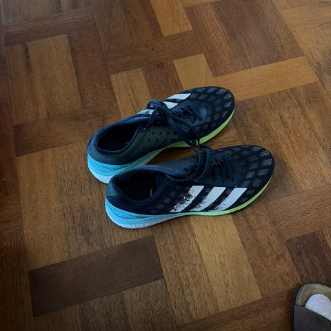 Adidas løpesko i størrelse 42 2/3 med gul farge. Egnet for løping.