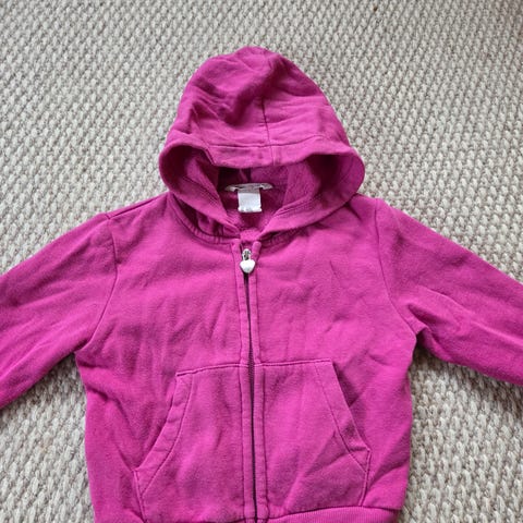Ubrukt rød hettejakke med nydelige detaljer.