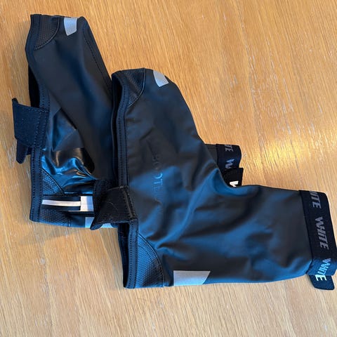 Sykkel-skoovertrekk i svart farge. Merket er White, og har borrelås og refleks på. Er strikk, og passer de fleste sko