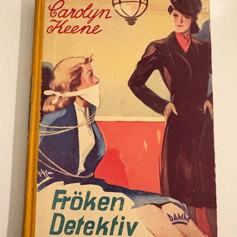 Selger Frøken Detektiv og Slangekolonien, norsk førsteutgave fra 1941. Basert på The Secret of Red Gate Farm. Etterspurt tidlig tittel i serien.