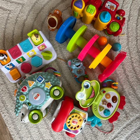 Babyleker og biteringer av god kvalitet. Alle er godt vasket og desinfisert. Kosedyret/sommerfuglen har lyder (setter inn nye batterier ved evnt salg😊).