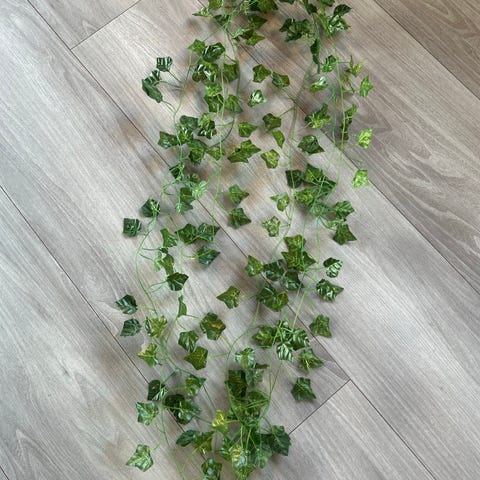Selger 3 stk kunstige eukalyptusgirlandere da vi gikk for annen pynt i lokalet istedet for.