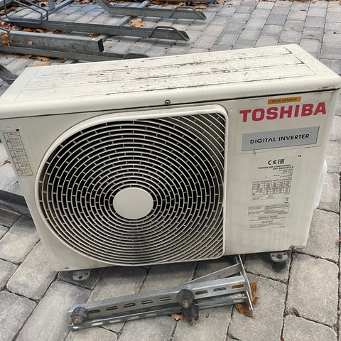 Mobil Airwell kjøler. Har hjul så lett å flytte på og følger med rør for å lede varme ut av vindu. Mangler kontroll og manual