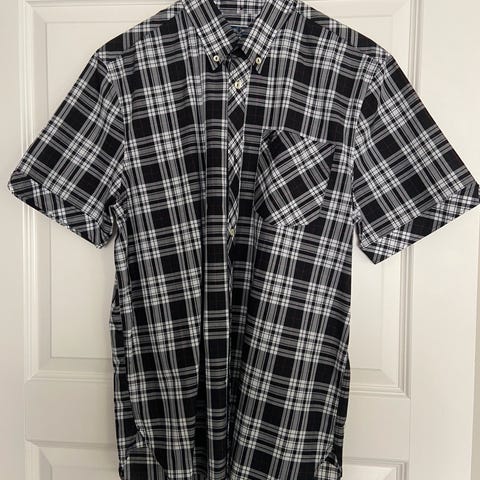 Selger en ubrukt Fred Perry skjorte i str M. Skjorten er blå/hvit rutet mønster. Fine detaljer i ryggen. Som ny.