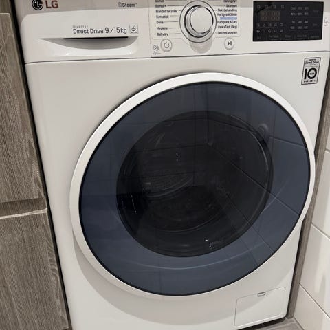LG P4AQVH1WE kombinert vask/tørk. Kombinert vaskemaskin og tørketrommel i ett apparat. Modellen har ulike vaske- og tørkeprogrammer, inkludert hurtigprogrammer og spesialprogrammer tilpasset forskjellige tekstiltyper. Må hentes og bæres selv. Den er tung, så bør være to. Det er heis i bygget.