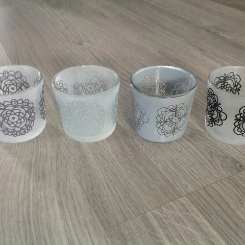 To dekorative telysholdere i glass med metall og steindetaljer. Gir et varmt og elegant preg.