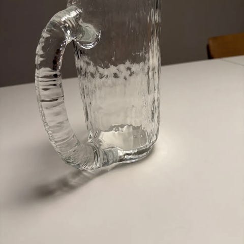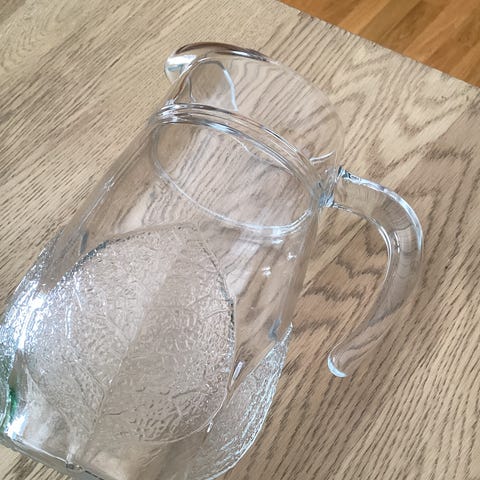 Høyden på muggen er 25,5 cm. Muggens åpning har diameter på 10 cm. Den er fin til både saft, vann og juice.