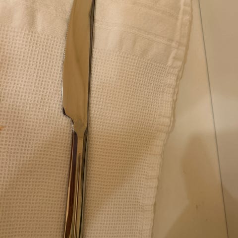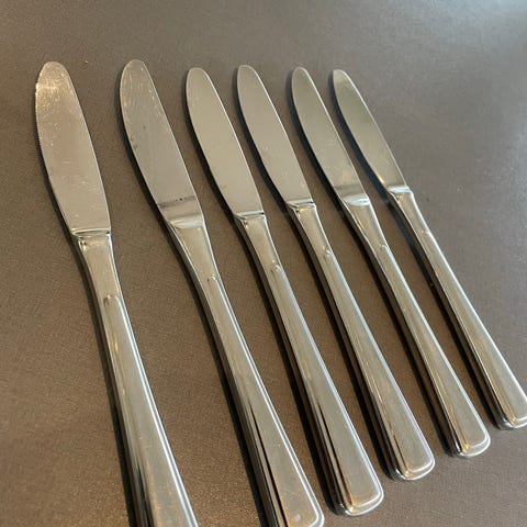 Stilige og elegante (biff)kniver, merke og design: fransk Guy Degrenne. 8 st, selges samlet 600 kr. Se mer: www.degrenne.com