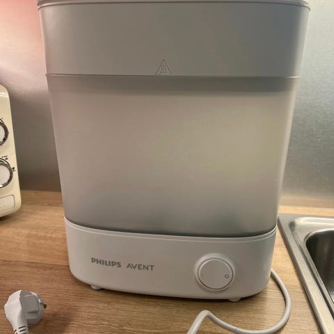 Har ikke hatt behov for sterilisator, derfor kun prøvd en gang. Ble dessverre merke, ref bilde nr 3. Finnes gode tips og triks for å fjerne merkene i manualen.
