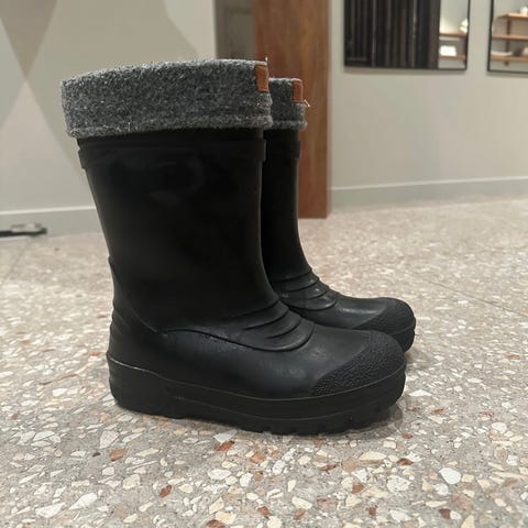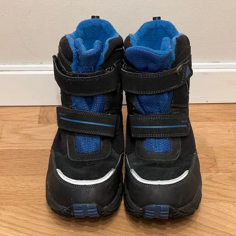 Code barne vinterstøvler i størrelse 35. Grønne med oransje detaljer. Støvlene har vannavstøtende materiale og solid såle med godt grep. Egnet for bruk i kalde og våte værforhold. Brukt en sesong. Nypris 900:-
