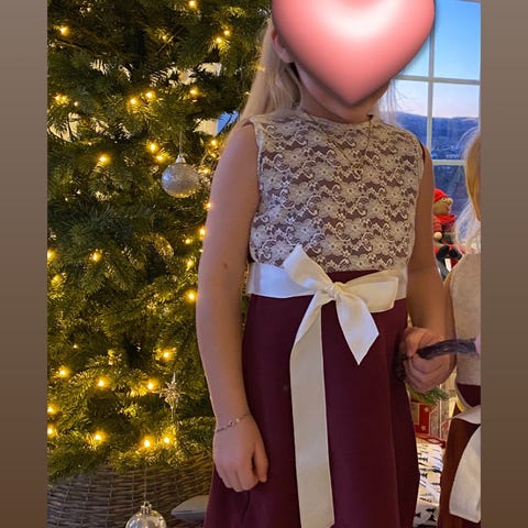 Nydelig julekjole fra Martine Barneklær i mørkeblå cordfløyel med rødrutete detaljer. Kjolen er dobbel, med underkjole sydd i. Perfekt til årets jule- og nyttårsfeiring for lillemor.