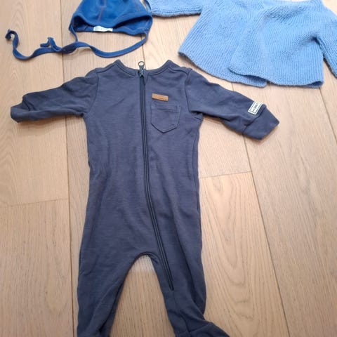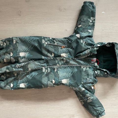 Pent brukt ulldress med bamsehette, samt hånd- og fotbeskytter. Passer også til strl 68.