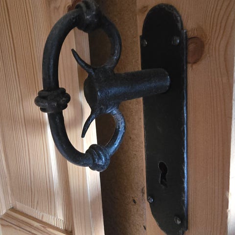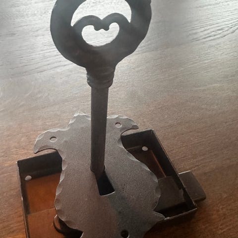 Dørbanker i smijern. 25 cm lengde og 13 cm bredde.
