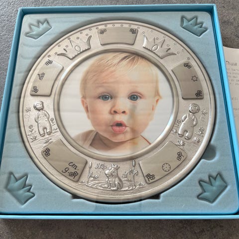 Helt ny porselensramme, traktor, med graveringsplate fra pia og per