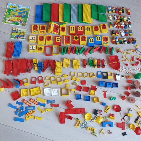 Komplett med instruksjon i god stand og en eske som ikke er i så god stand.
