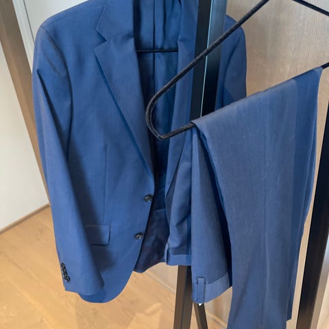 Selger denne flotte dressen, som sønnen min brukte til konfirmasjonen sin da han var 15 år. Følger med hvit penskjorte også!