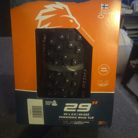 Det siste innen dekk for pendling og veibruk på vinterstid. Suomi Tyres har jobbet sammen med Black Donut for å lage det absolutt beste dekket til snø og is for den aktive pendler og vintersyklist. Hele 244 pigger sørger sammen med et meget snø- og isvennlig mønster for et grep helt utenom det vanlige. Små mønstre på hver eneste knast i det nøye gjennomprøvde mønsteret hjelper piggene med å gi det det absolutt beste grepet. Piggene er fordelt i 4 spor i vifteform, slik at flest mulig pigger er i kontakt med underlaget til enhver tid. 4 spor er også meget gunstig ved bremsing på ren is. Dekkene er selvsagt tubeless ready, og utstyrt med refleksstripe på hver side.
