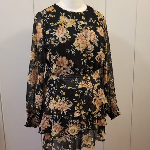 Kjole fra Bytimo i brun farge med blomstermønster.