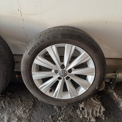 Dekkene ser ubetydelig brukt og felger har noe lakkskader som vises på bilder