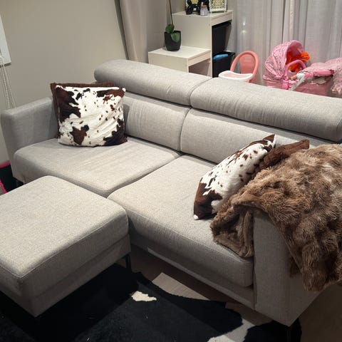 En veldig komfortabel sofa med lenefunksjon. Snorene trenger bare å festes slik at den kan brettes ut.