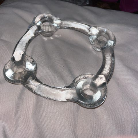 Pen lysestake i glass fra svenske Pukeberg. Denne er 19,5 i diameter og er i mellomstørrekse. Det finnes både større og mindre utgaver. Veldig fin stand, blank og fin.
