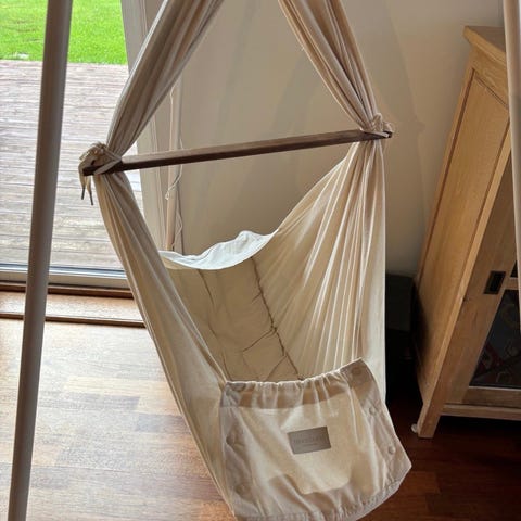 «Vår avstiverbunn er laget for å gi mer plass i hengevuggen, og flater ut krumningen av hengevuggen, samtidig som den gir babyen et avslappende og komfortabelt sovemiljø.»