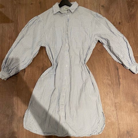 Blå og hvit kjole