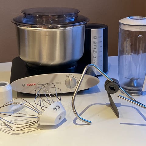 Bosch kjøkkenmaskin med eltekrok i rustfritt stål. Passer til elting av deig og baking.