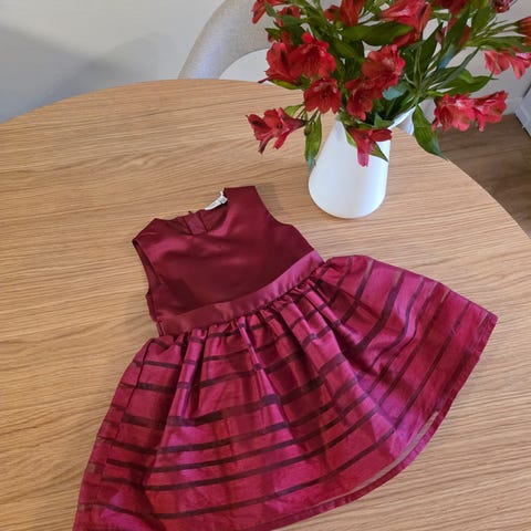 Pen kjole i str 92. Nydelig dyp rødfarge. Små nupper men det kan lett fikset.